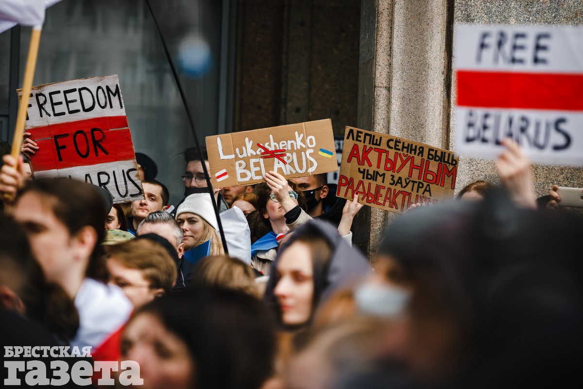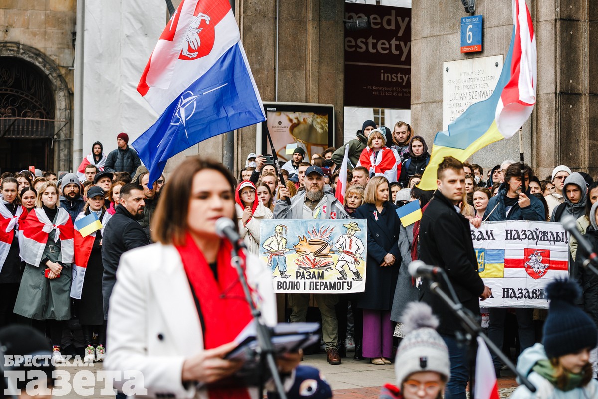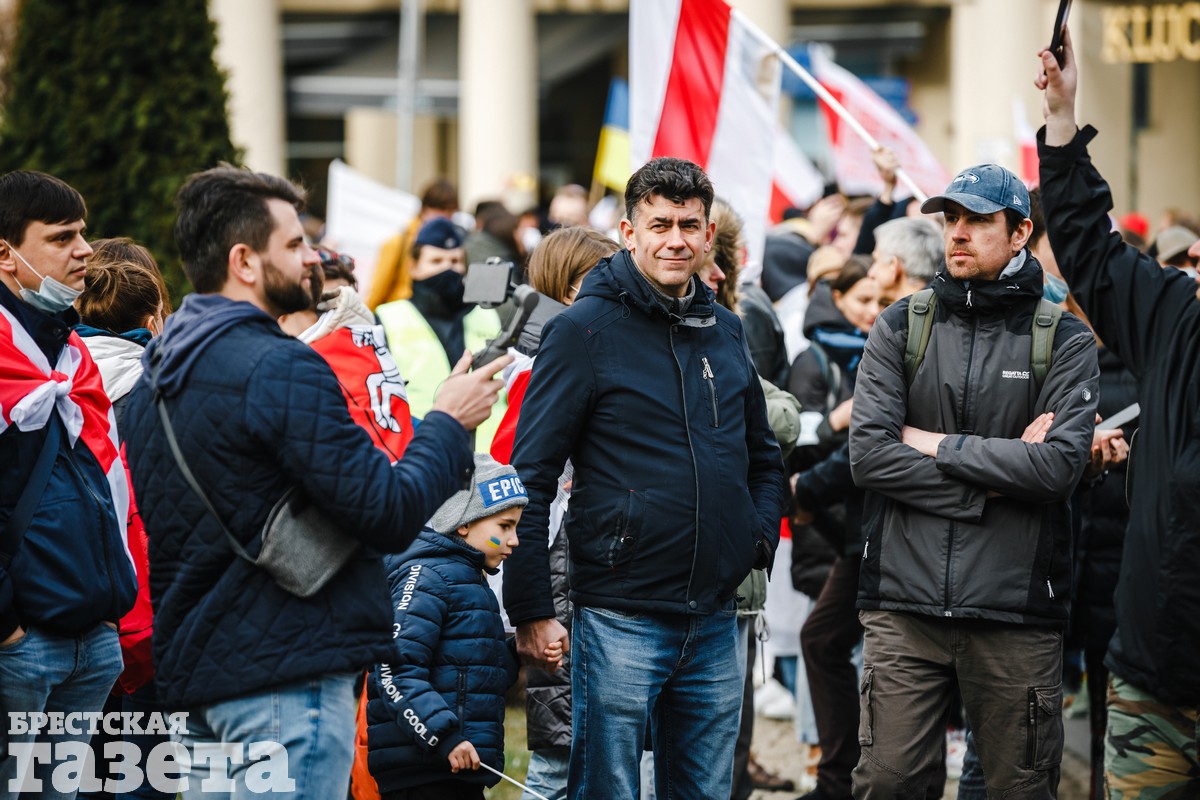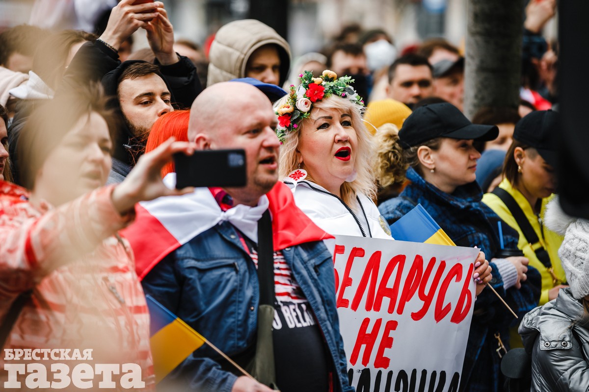 Акция проходила под лозунгом «Белорусы солидарны с Украиной». «Мы громко заявляем, что белорусы против войны в Украине. Еще раз заявим: Лукашенко и Путин — диктаторы, которых не поддерживает белорусский народ!»,- говорили накануне организаторы.