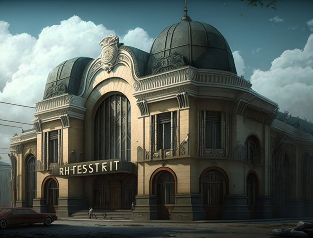 Кинотеатр «Беларусь» на Советской от Midjourney чем-то похож на реальный кинотеатр, разве что здание получилось более квадратным.