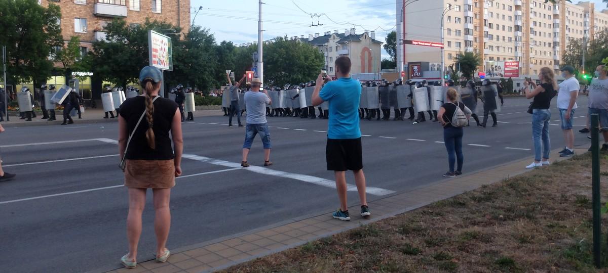 «Как раз начали рваться петарды возле ОМОНа. ОМОН пошел с дубинками на людей. Все побежали прятаться, и я тоже. Все побежали во дворы, а я за ларьки. Смотрю: ребенок мой несется. Кричу: «Давид, а ну-ка стой!». А он говорит, что ему надо найти друзей. «Хорошо, говорю, ищи и встретимся у моста возле кольца». И он убежал», — вспоминает брестчанка.
