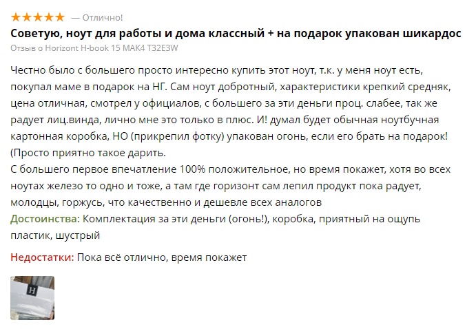 Тем временем в каталоге «Онлайнера» появился первый отзыв на H-book MAK4, датированный 23 декабря, — покупатель поставил ему пять звезд, оценив его как «добротный» и «крепкий середняк». Позже этот отзыв исчез, но «Зеркало» успело сделать скриншот.