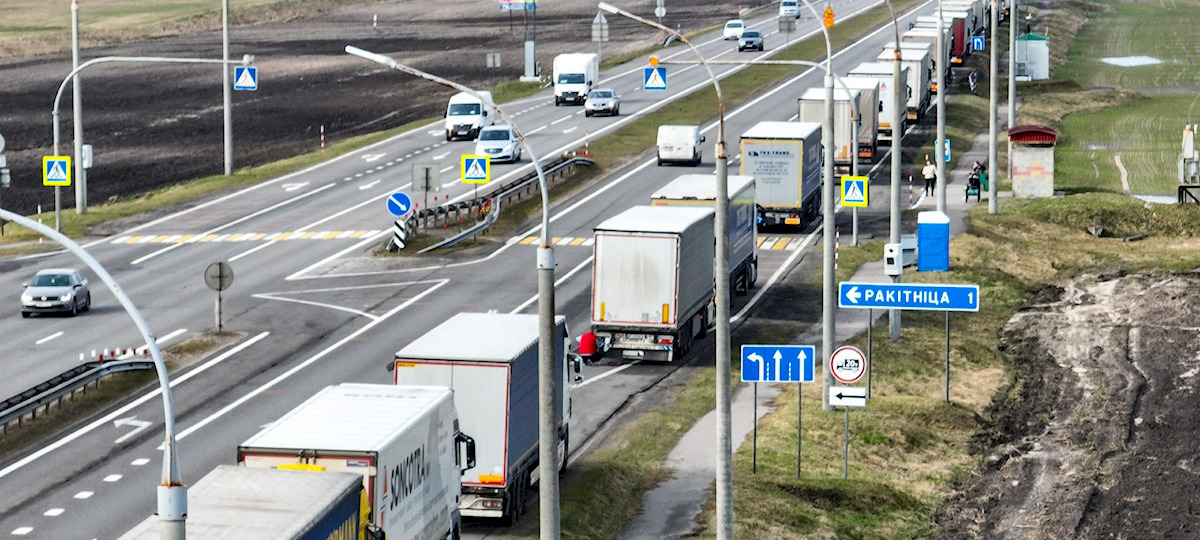 24.03.2023 16:44 Очередь из фур растянулась до агрогородка Ракитница, который находится в 30 км от границы с Польшей. Источник фото