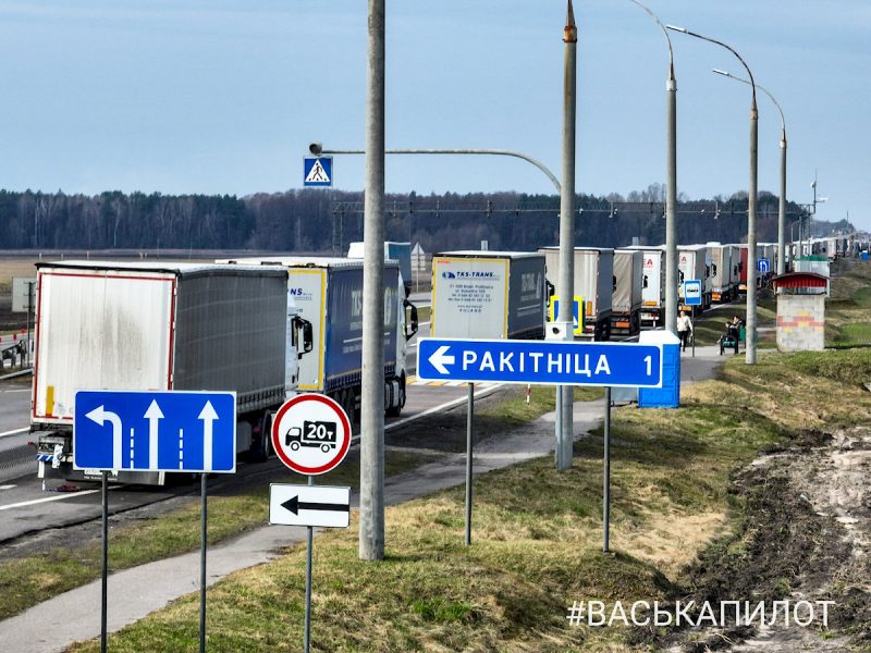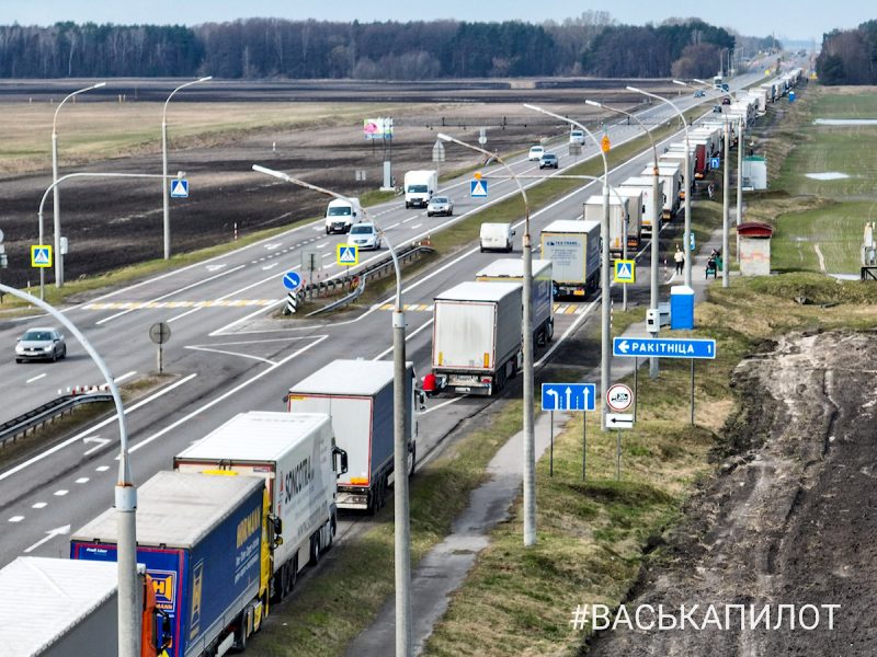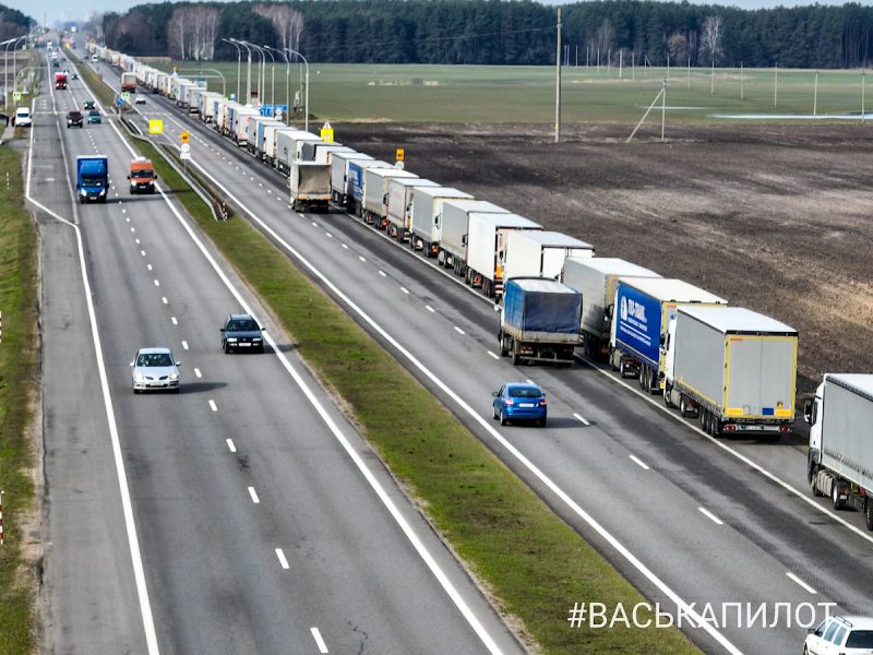 Очередь из фур растянулась до агрогородка Ракитница в Жабинковском районе. Фото: ВаськаПилот