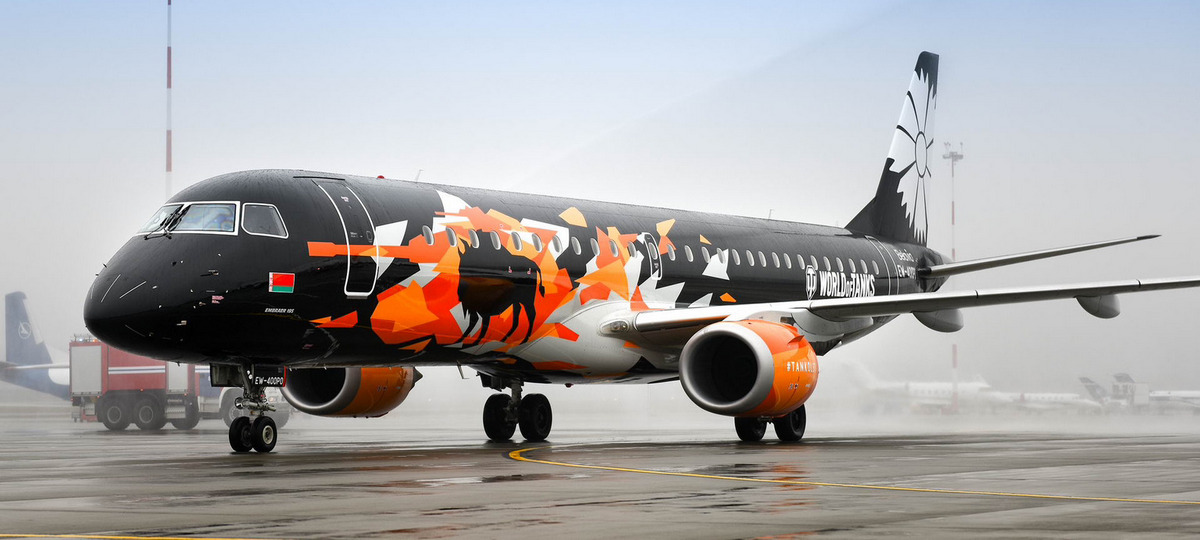 Первый самолет в ливрее World of Tanks, более известный как «танколет», появился в 2018 году. Тогда авиакомпания начала тесное сотрудничество с успешным беларуским разработчиком Wargaming. Благодаря необычной черной окраске самолет вызвал массу эмоций: как положительных, так и отрицательных, а также впервые в истории авиации стал символом видеоиигры.