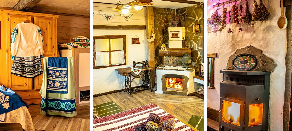 К услугам гостей — одноэтажный деревянный дом «Беларуская хата». Это полностью реставрированный сельский дом 19 века со всеми атрибутами сельской жизни. Посмотрите, какой он аутентичный.