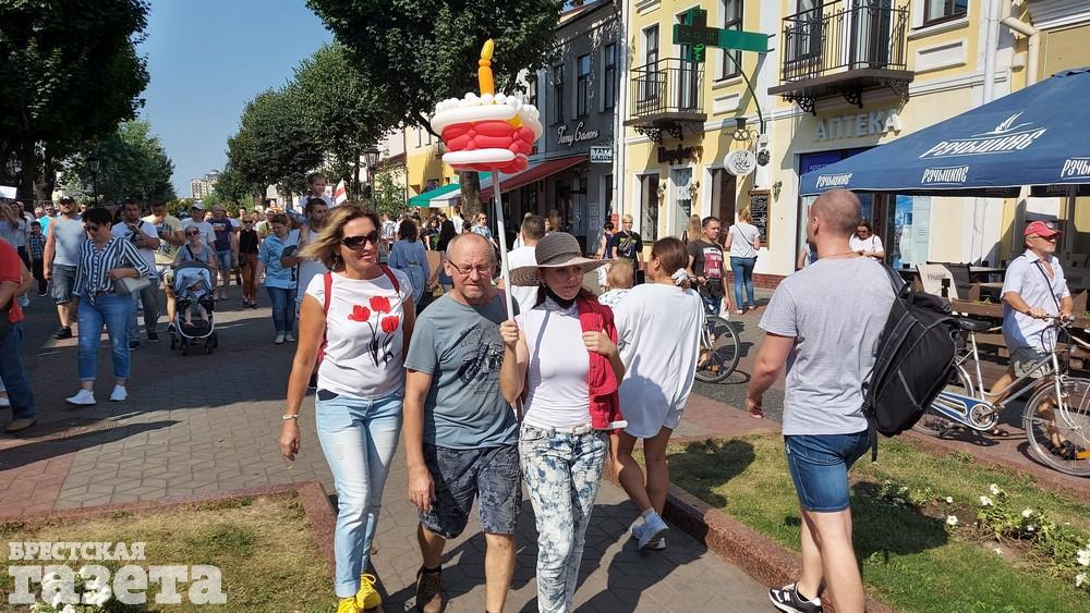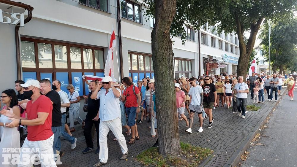В это воскресенье, 30 августа, брестчане пошли по новому маршруту. На этот раз бело-красно-белая колонна на перекрестке улицы Московской возле «Беларусбанка» повернула налево — на Пионерскую. Дойдя до перекрестка с Пушкинской, они свернули на эту улицу и вернулись в центр города к ЦУМу.