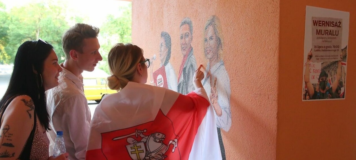 События 2020 года в Беларуси не прошли мимо Алены. Она активно следила за предвыборной кампанией из Люблина, а августе выходила на акции солидарности с Беларусью. Тогда же у нее появилась идея для дипломной работы: нарисовать мурал, посвященный символам беларуского протеста.
