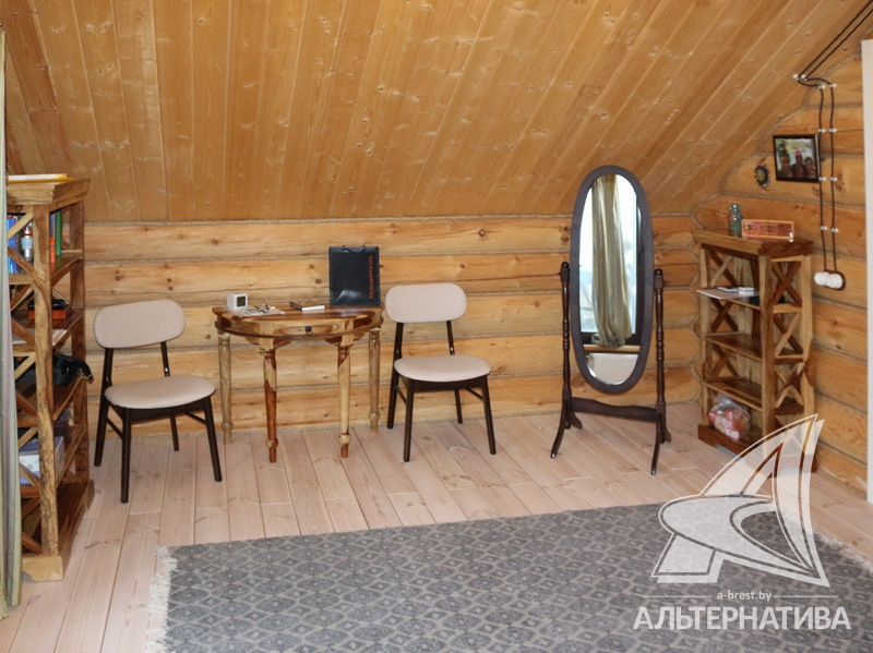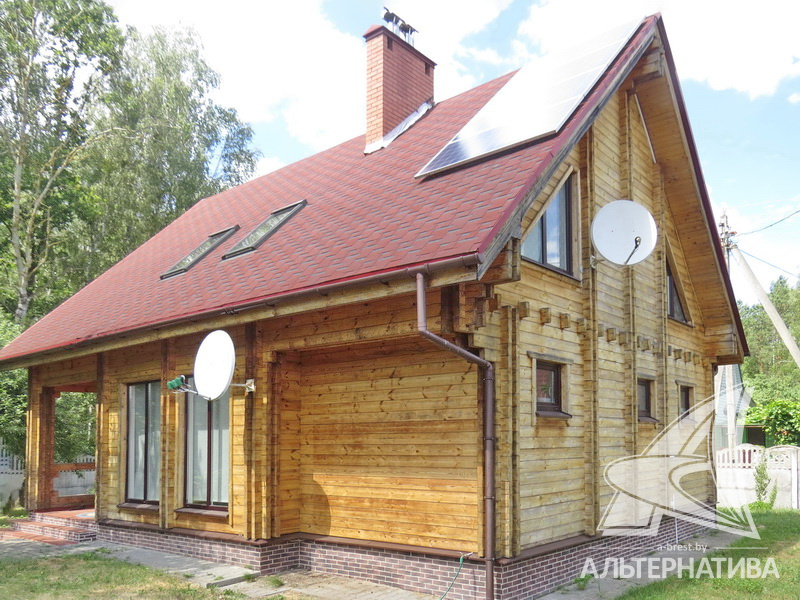 Дачный дом жилого типа с мансардой расположен в живописном пригороде Бреста. Просторный дом из профилированного бруса построен в стиле «русского терема». Общая площадь 146,12 кв.м., жилая – 68,51 кв.м.