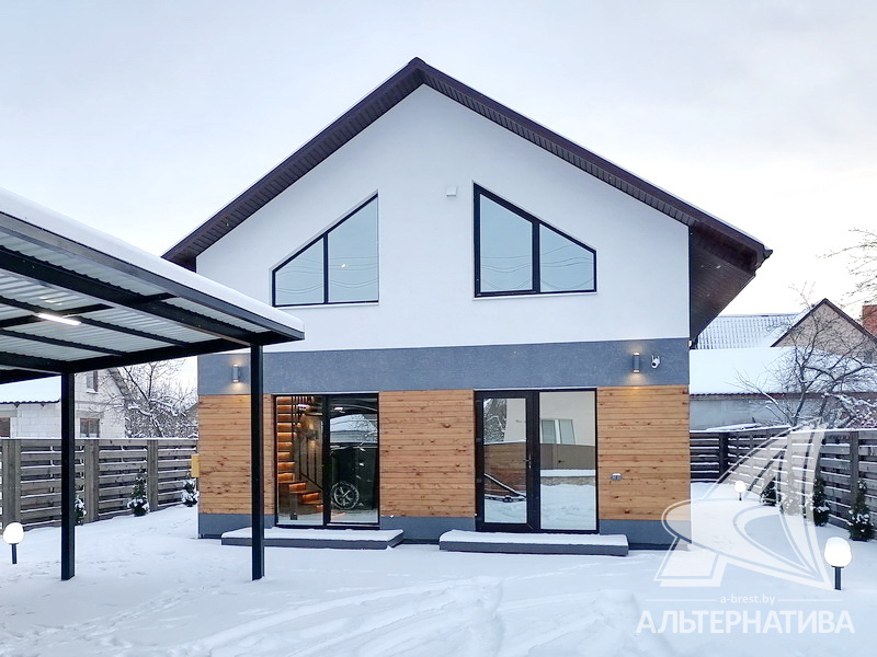 Мансардный дачный дом жилого типа 2020 года постройки находится в ближайшем пригороде Бреста. Общая площадь — 96,0 кв.м.