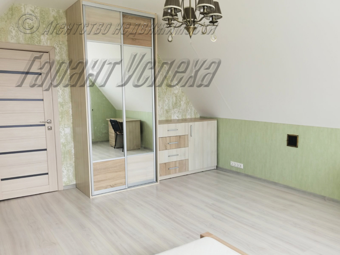 В доме — евроремонт в стиле минимализма, немало уникальных дизайнерских решений. Многоуровневая подсветка создает трехмерный объем, полы – керамогранит с подогревом. Комнаты обставлены функциональной мебелью и техникой, в санузле – сантехника прогрессивных моделей.