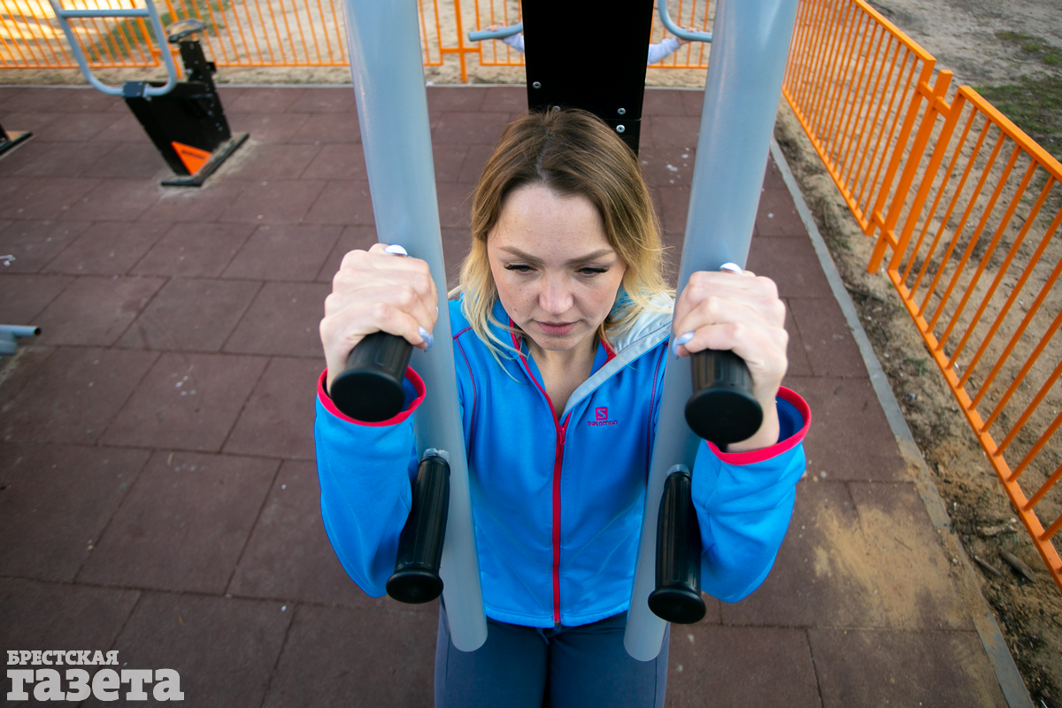 Юлия Гулевич, сертифицированный фитнес-тренер: «Это не совсем мой формат. Я привыкла тренироваться с весом. Но здесь вполне можно позаниматься ради поддержания спортивной формы, после долгого перерыва и начинающим. Подтягивания с разными хватами, упражнения для пресса, отжимания на брусьях – вот первое, что приходит в голову, глядя на эту площадку. Уверена, список можно расширить, проявив фантазию».