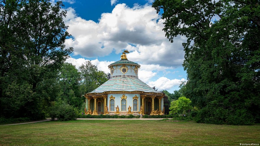 Китайский чайный домик возвели в парке Сан-Суси по воле и эскизам Фридриха Великого в 1755–1764 годах. Строительство этого летнего павильона затянулось из-за Семилетней войны, после которой Пруссия окончательно вошла в круг ведущих держав Европы — не без помощи царя Петра III, поддержавшего немецкого монарха.