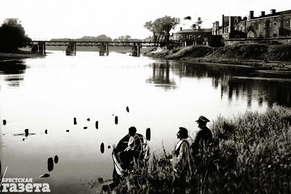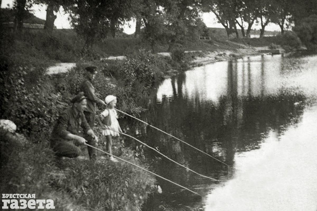 С 1939 по 1941 годы на территории Брестской крепости располагались военные части Красной армии. На архивном снимке видно, как советские командиры увлеченно занимаются ловлей рыбы в правом рукаве реки Мухавец на Кобринском укреплении.