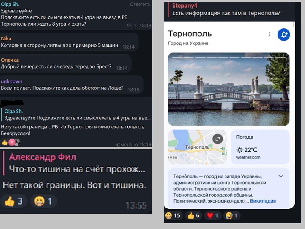 По реакциям на сообщения в приграничных чатах можно понять, как относятся к тем, кто пишет «Белоруссия». А те, кто поправляет россиян, получает на свои сообщения положительные эмодзи.
