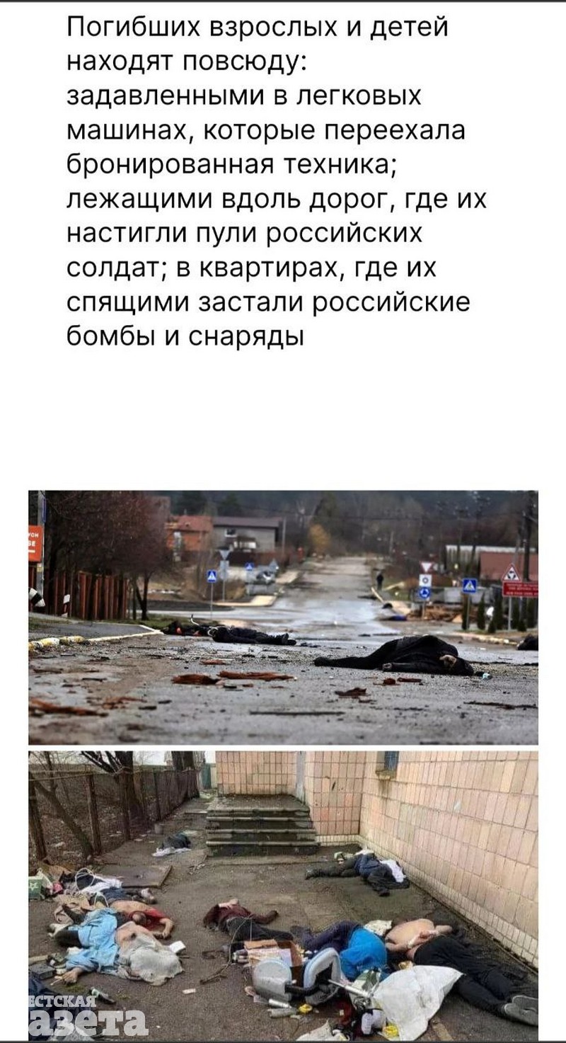 Текст целиком и полностью посвящен зверствам оккупантов в Буче.