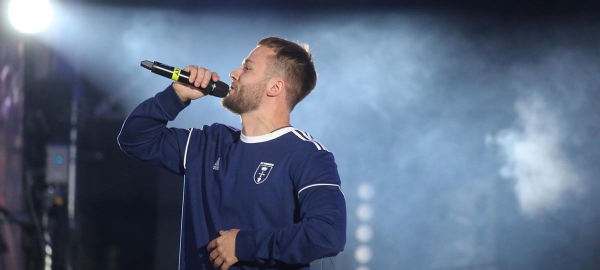 На концерт на «Динамо» Корж пришел в байке футбольного клуба «Лунинец», который уже 20 лет как не существует.