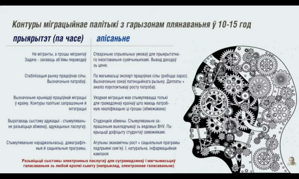 «Але ёсьць яшчэ адна акалічнасьць. Бадай усе суседнія дзяржавы загаварылі пра дэмаграфію і працоўныя рэсурсы. Распрацоўваюць й рэалізуюць праграмы па прыцягненьню мігрантаў. Ня ўсіх — толькі патрэбных для ўласнае эканомікі, — отмечает аналитик Игорь Тышкевич. — Беларусь засталася адной зь нешматлікіх дзяржаваў у рэгіёне без акрэсьленых прынцыпаў міграцыйнае палітыкі. Але ж, калі ты не маеш уласнага бачаньня, не маеш уласнае палітыкі, то ты толькі рэсурс для суседзяў.