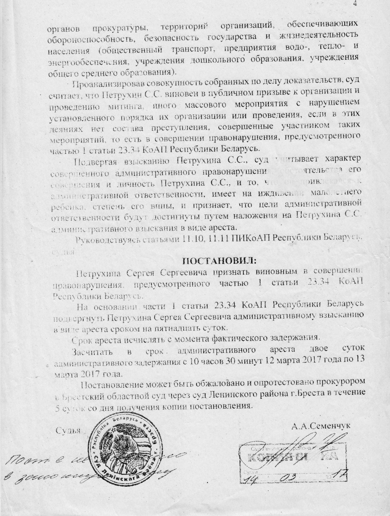 По подсчетам правозащитников, этой весной под раздачу попали более 900 человек. Задержанных наказывали как штрафами, так и «сутками». Минимальный срок ареста — 2 суток, максимальный — 25 суток. Минимальный размер штрафа — 2 базовые величины (46 рублей), максимальный — 80 базовых величин (1 840 рублей).
