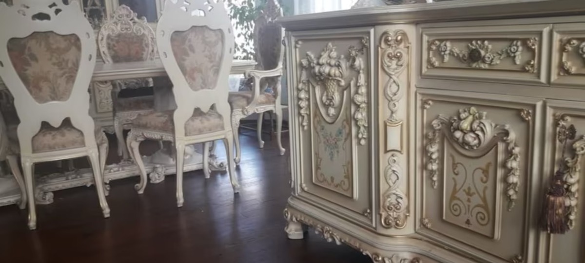 Комод, стулья, столы, буфет – такое ощущение, что вся мебель в доме привезена прямиком из Версальского дворца.