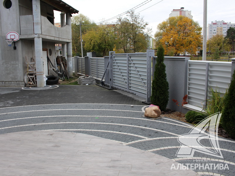 Территория огорожена металлическим забором с откатными воротами.