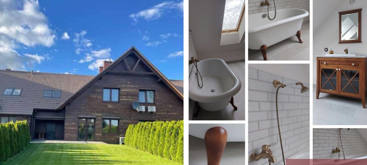 Таунхаус 2015 года постройки находится в зоне элитной коттеджной застройки Ямно-Вычулки в Бресте. Дом построен из блоков, утеплен и обшит имитацией бруса. Кровля выполнена из натуральной черепицы. Все элементы наружной отделки, включая кровлю, выполнены в общем архитектурно-дизайнерском стиле.