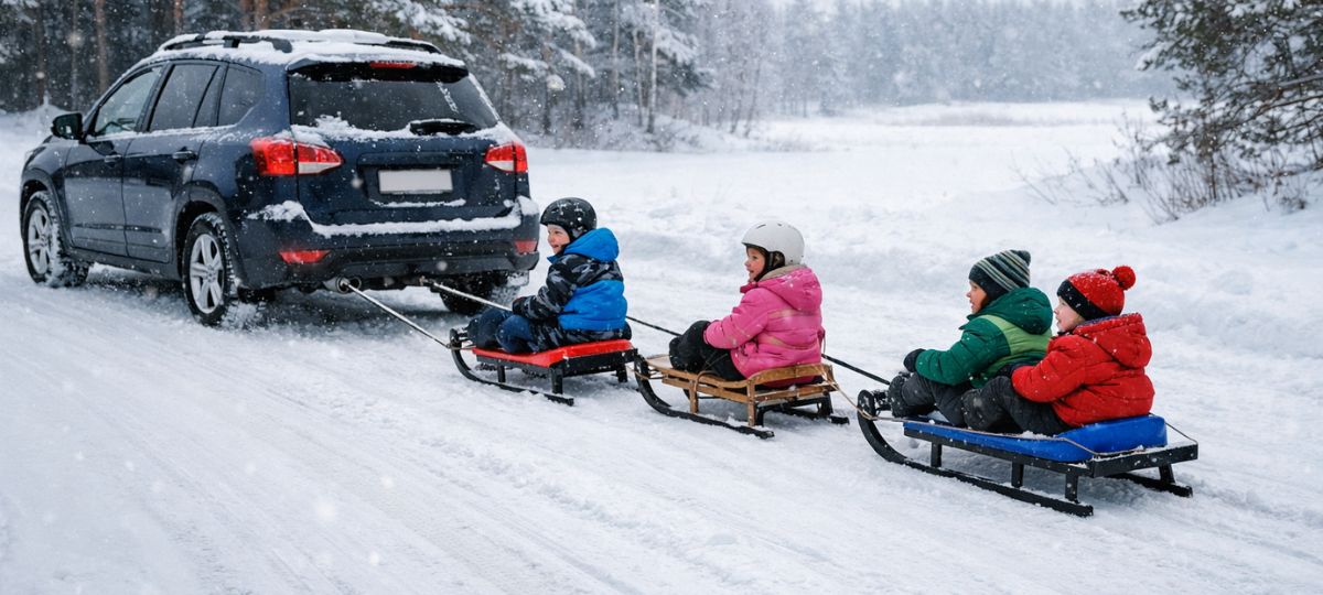 Санки, покрышки и трос — не средства для движения по дороге. Рывок, занос, отвязавшийся узел, неожиданный маневр другого авто — и остановить процесс уже невозможно. Особенно зимой, в темноте и на скользком асфальте.