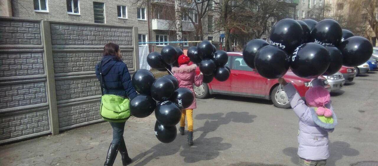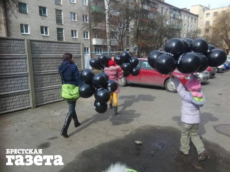 В центре Бреста раздавали листовки о вреде свинца и черные воздушные шары