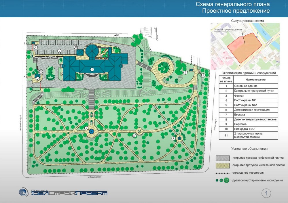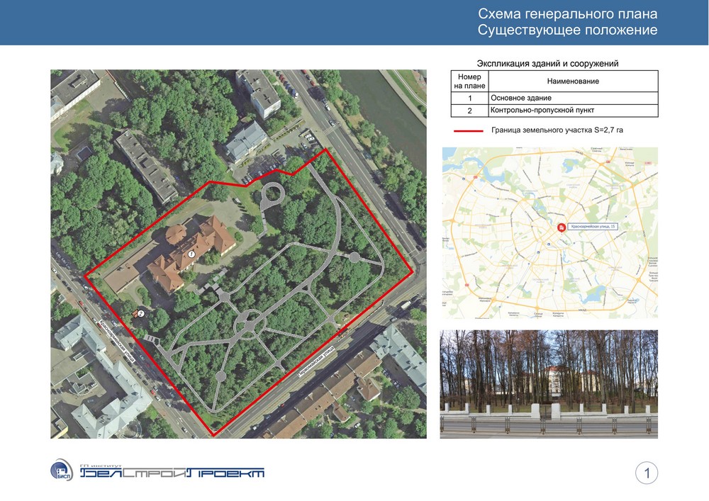 Возле здания — давно огороженный сквер площадью в три футбольных поля, бывший парк юных натуралистов. Весь участок — 2,7 га.