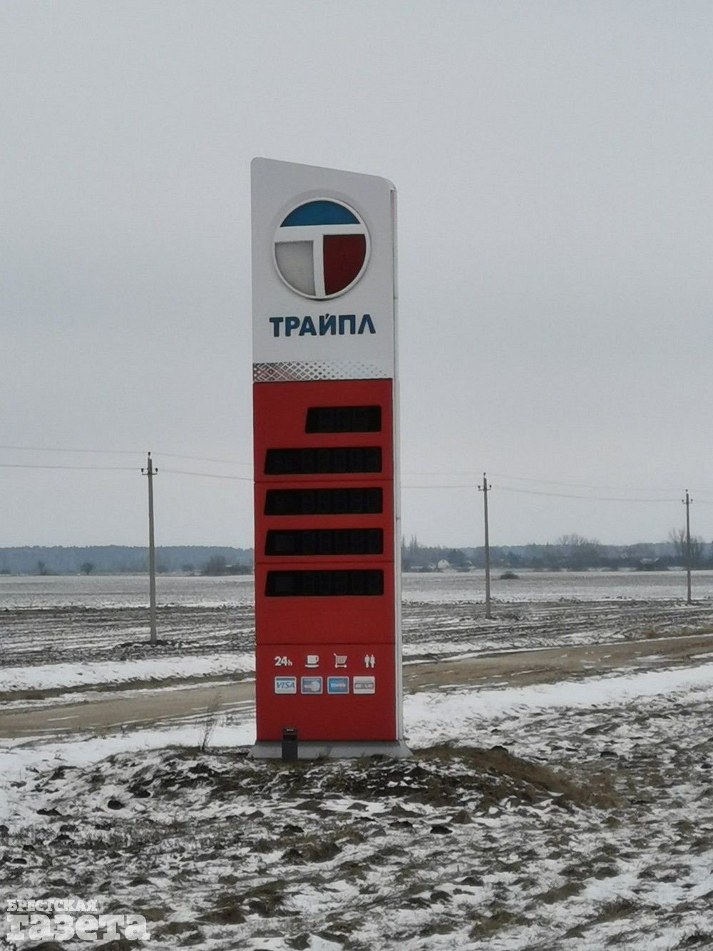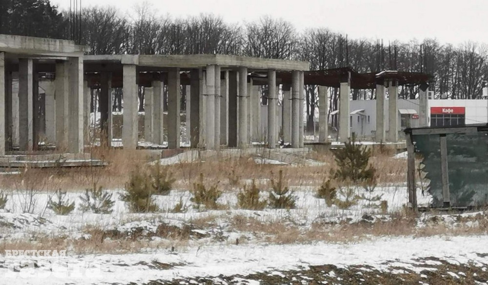 Несколько лет на площадке стоял большой строительный кран, его забрали, когда он понадобился собственнику – одной из брестских организаций. Остались каркас незавершенной гостиницы и недействующая АЗС, которую успели построить.
