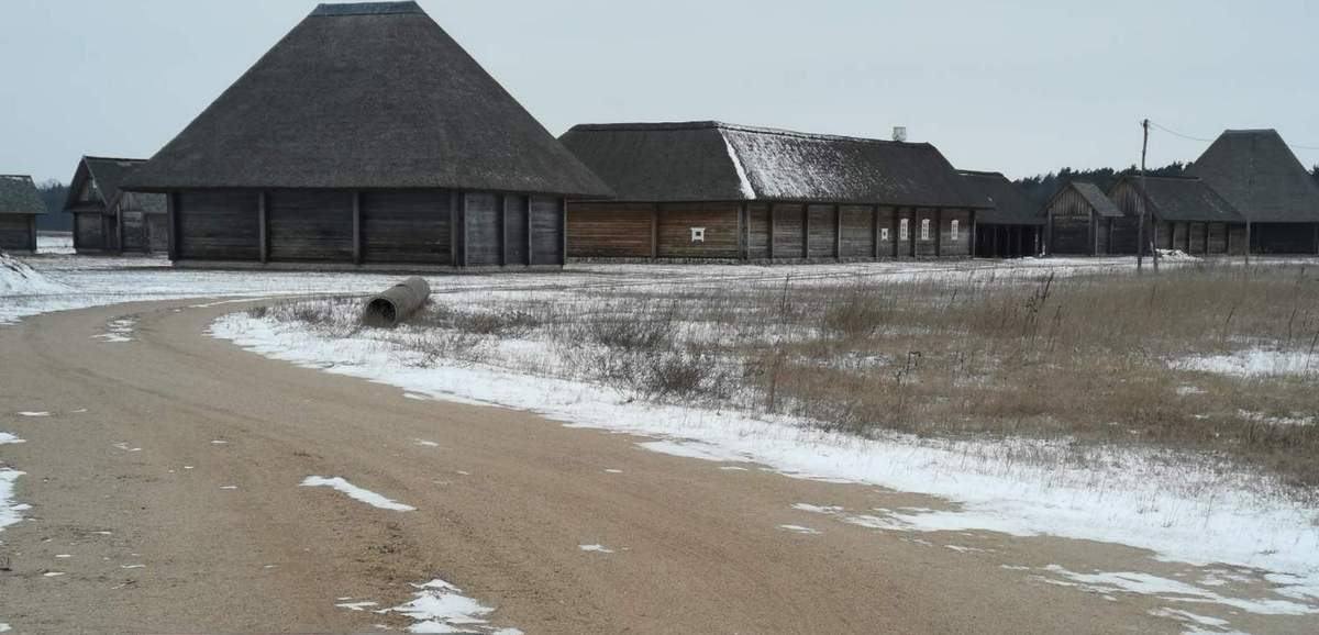Подо льдом и снегом сейчас скрыто искусственное озеро. Оно образовалось еще во время строительства “олимпийки” (отсюда брали песок на подсыпку дороги). На начальном этапе создания этнокомплекса водоем очистили и расширили. Каскад из 5 озер должен был стать жемчужиной туристического объекта.
