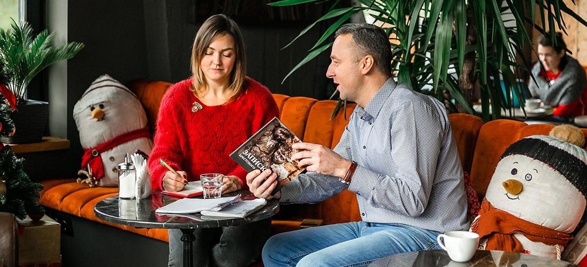 На встречу с нами краевед принес черновик книги, написанный от руки, и первый пробный вариант печатного издания с еще не улучшенными фотографиями и личными правками. Тем ценнее получившейся в итоге вариант: с лощеными страницами и сочными снимками.