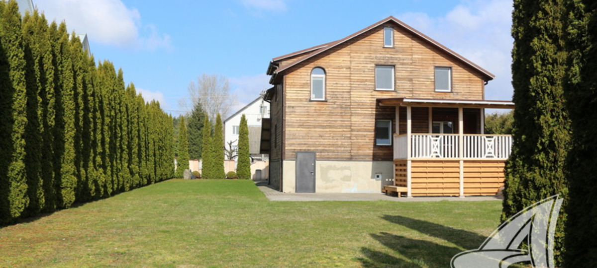 Двухэтажный жилой дом в Вычулках 2001 года постройки выглядит вполне современно и неизбито. Коттедж облицован деревом, что сразу придает сто очков к уюту. Как и открытая терраса, где можно коротать долгие летние вечера. Дом стоит в обрамлении зелени и уличных фонарей. Все это создает теплую атмосферу домашнего очага.
