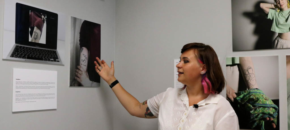 «На выставке я рассказала историю татуировки Ольги. И она произвела на людей, которые пришли, шокирующий эффект. Они вживую увидели татуировку, скриншоты переписки с Витольдом. Жил человек, 19 сентября его задержали, потом осудили на пять лет. Позже оказалось, что это был смертный приговор», — рассказывает авторка выставки.