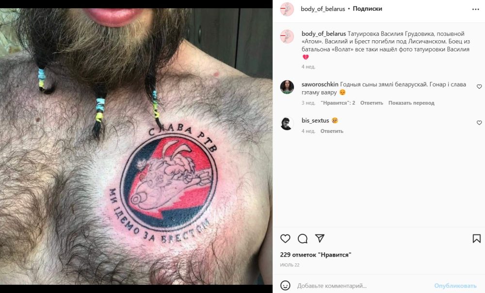 Несколько бойцов полка Калиновского набили татуировки в память о роте тяжелого вооружения и Иване «Бресте» Марчуке.
